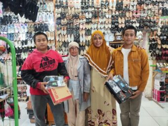 ” Alhamdulillah kedua anak ini yang berstatus pelajar SLTP dan SLTA kami bawa ke toko sepatu untuk mereka pakai ke sekolah,” jelas Quratul Aini.