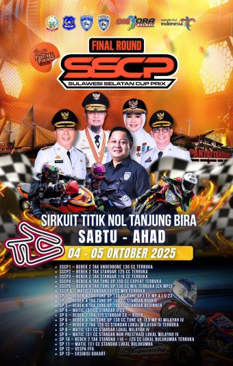 Matarakyatta, Bulukumba,- Event balap motor Final Round Sulawesi Selatan Cup Prix (SSCP) akan dilaksanakan di Sirkuit Titik Nol Bira Bulukumba, pada Sabtu-Minggu, 4-5 Oktober 2025 mendatang.
