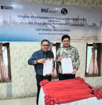 MATARAKYATTA, BULUKUMBA, – Koperasi Simpan Pinjam (KSP) Berkat Bulukumba resmi menjalin kerja sama dengan PT Bank Syariah Indonesia (BSI) Area Makassar melalui penandatanganan Nota Kesepahaman (MoU) yang berlangsung pada Senin, 29 September 2025 di Bulukumba.
