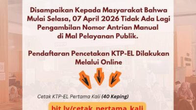Mulai Selasa, 7 April 2026, pengambilan nomor antrian secara manual di Mal Pelayanan Publik (MPP) tidak lagi diberlakukan.